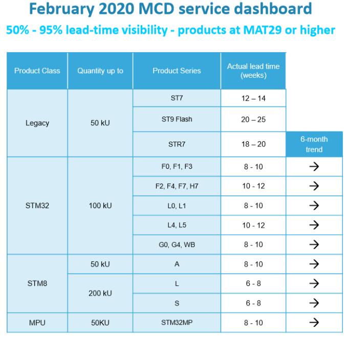 從ST最新發(fā)布的產(chǎn)品交期表來看,很多產(chǎn)品的交期確實有變長的趨勢。但是正常排單的客戶,交貨受影響還是比較小的??紤]到疫情可能帶來的上下游產(chǎn)業(yè)的影響,大家還是盡早排單吧.意法半導(dǎo)體MCU代理商英尚微電子已為物聯(lián)網(wǎng),5G,汽車行業(yè)等應(yīng)用領(lǐng)域提供了大量優(yōu)質(zhì)可靠的MCU產(chǎn)品.
