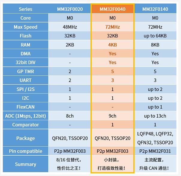 靈動微電子MM32F0040與MM32F0020,MM32F0140的功能對比