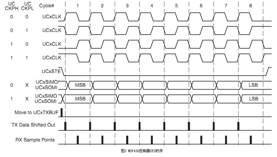 在SPI操作中,最重要的兩項設(shè)置就是時鐘極性(CPOL或UCCKPL)和時鐘相位(CPHA或UCCKPH)。時鐘極性設(shè)置時鐘空閑時的電平,時鐘相位設(shè)置讀取數(shù)據(jù)和發(fā)送數(shù)據(jù)的時鐘沿。