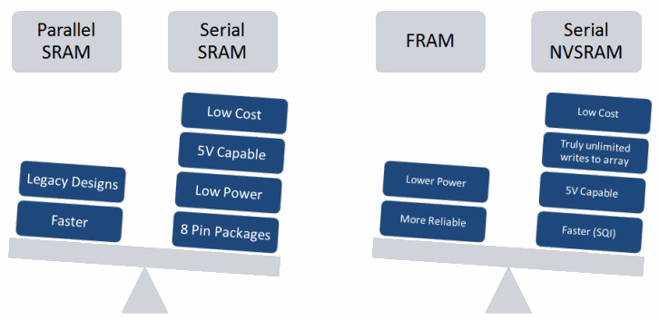 串行SRAM和NVSRAM在尺寸、電壓、速度、功耗和成本等方面帶來了諸多優勢。